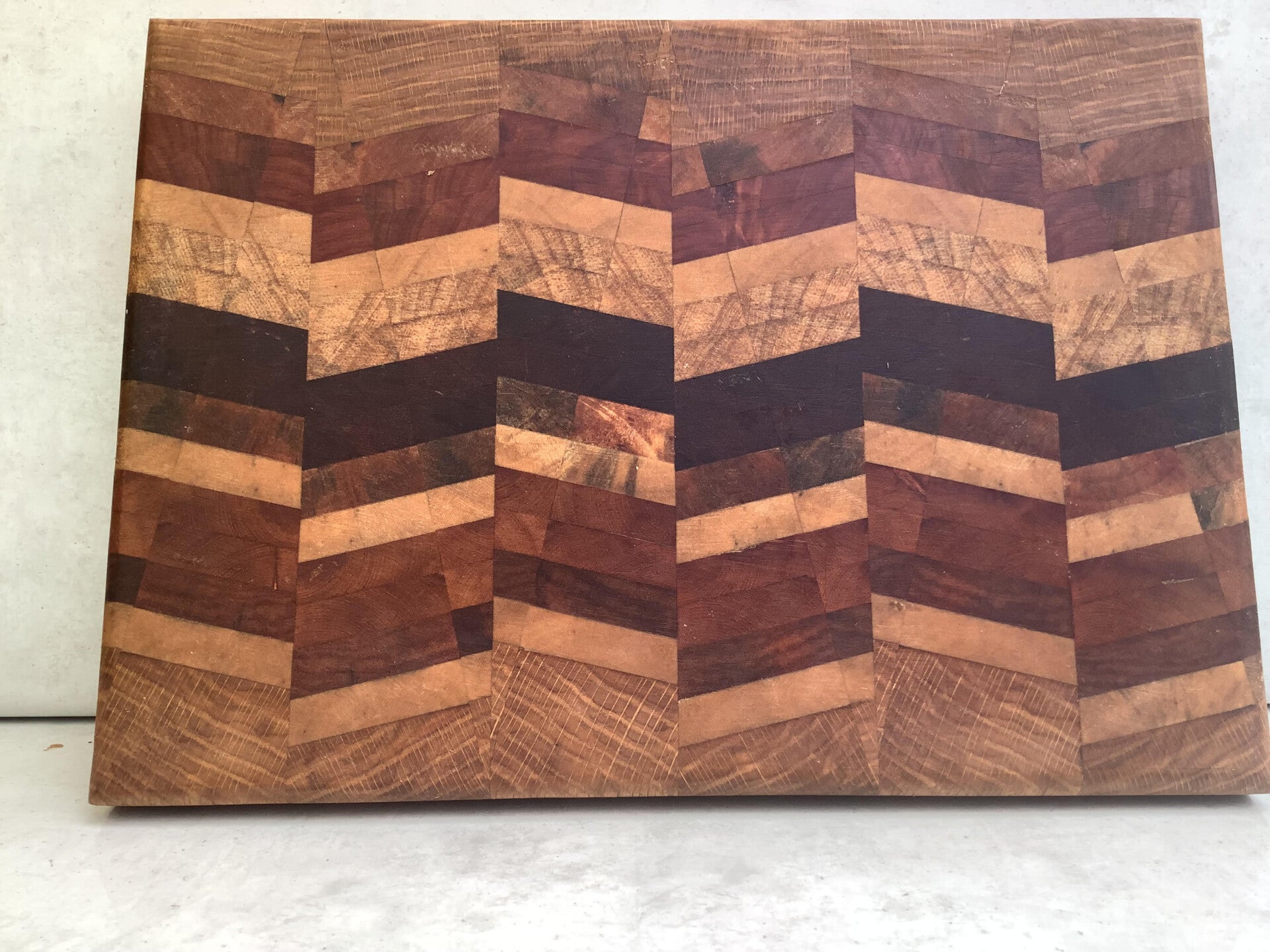 This special end grain board is unique in that it has differing patterns on each side which will never be repeated. Made from recycled Asian hardwoods it is infused with over 10 applications of Tung making it a robust and hardy cutting board
